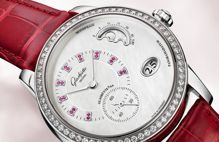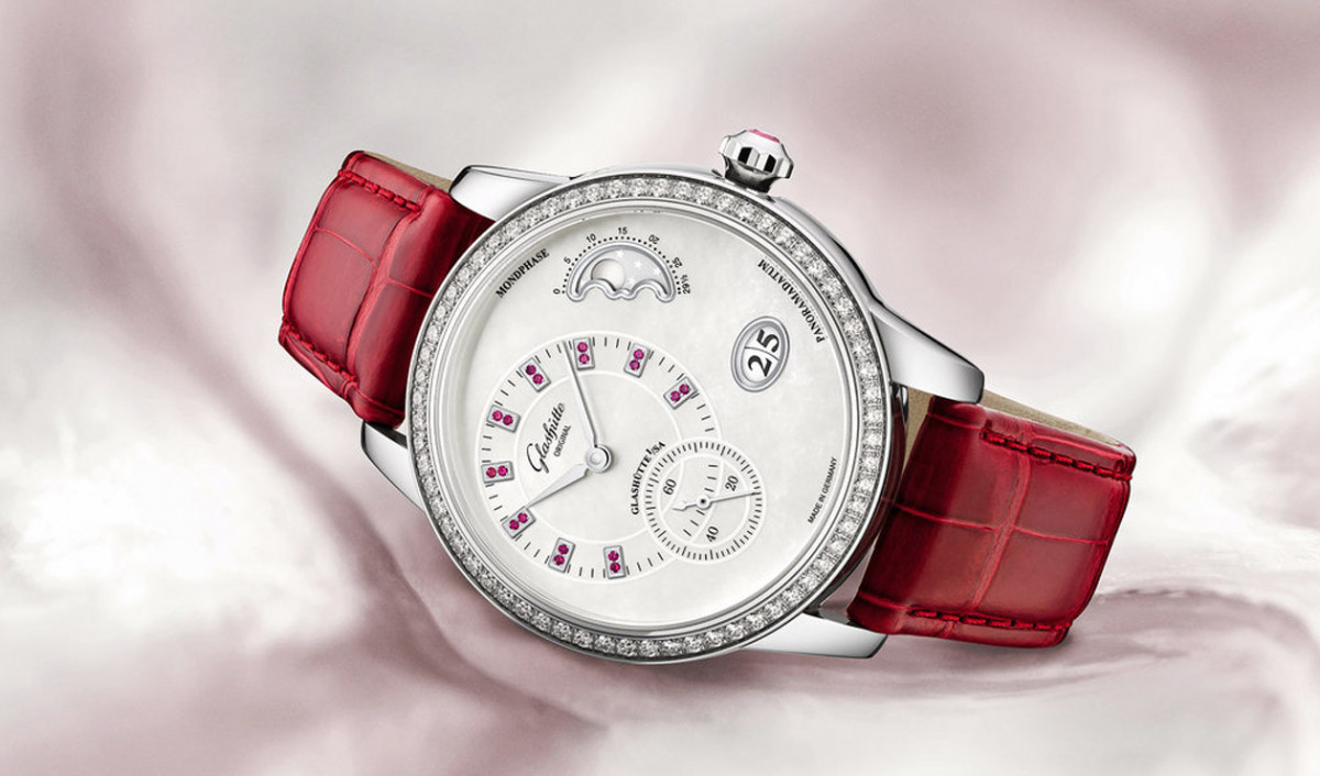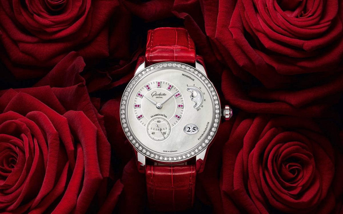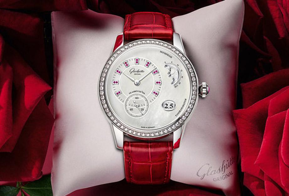 ▲為了慶祝7月6日國際接吻日,格拉蘇蒂原創推出PanoMatic Luna偏心月相女士腕錶新作,以紅寶石點綴偏心錶盤,流露出甜甜的濃情蜜意。