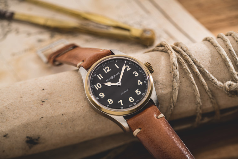 此款腕錶以兩種面盤(黑色與香檳煙色)重新詮釋Minerva錶廠昔日推出的腕錶,面盤採用米色冷光阿拉伯數字以及精確的軌道式分鐘刻度環。為了提升最大的時間讀取清晰度和精緻感,冷光教堂式指針從左到右採微拱狀設計。具100米防水性能,並經過萬寶龍實驗室500小時測試。本款腕錶提供NATO錶帶或干邑棕色陳舊質感小牛皮錶帶(米色縫線)兩種選擇。