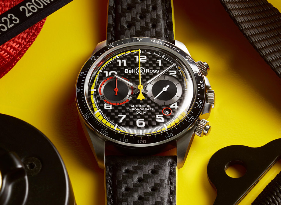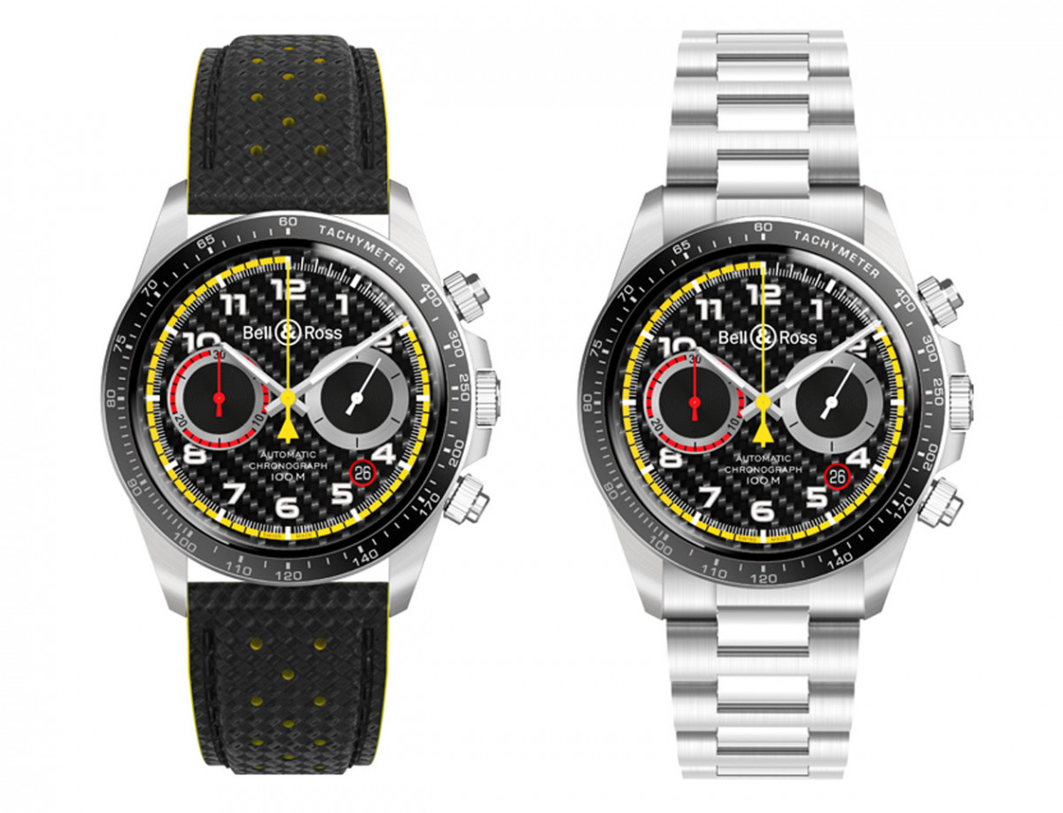 BR V2-94 R.S.18 計時錶的設計,令人聯想起車手駕馭跑車馳騁賽道以及扣人心弦的激烈戰況;對車手而言,腕錶不只是時計工具,亦是賽事中時刻相伴的好拍擋。此新作不乏一級方程式賽車運動元素靈感,令人投入精彩的賽車國度:緞面打磨精鋼錶殼直徑41毫米,碳纖維面盤的黃黑兩色搭配與雷諾一級方程式車隊的專色呼應(而碳纖維是賽車界應用的尖端高科技物料之一)。BELL & ROSS與雷諾車隊結緣,皆因雙方對精準表現及精益求精的執著不謀而合,而雙方的合作成為鞭策BELL & ROSS的強大動力,更為品牌帶來豐富的靈感啟發。