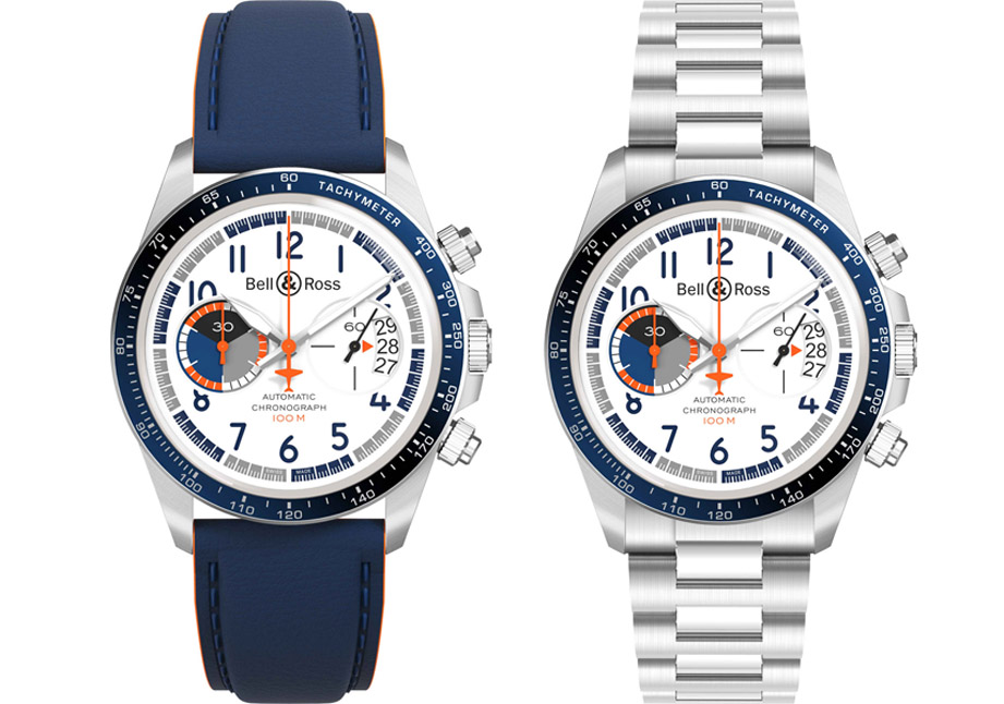 BELL & ROSS柏萊士冒險之旅始於駕駛艙,其鐘錶設計靈感直接源於飛行儀錶和航空業黃金時代。其冒險之旅延續到了如今的腕錶,而現在更乘 BR-Bird 之勢重返天空。在搭配三指針和計時功能的 Racing Bird 腕錶設計中,處處體現著這種速度和性能特性。腕錶延續了BELL & ROSS柏萊士工作室設計比賽飛行器的美學特性,在顏色代碼方面更是極其相似:錶盤白色,猶如飛機機身。數字、錶圈、計時碼錶盤和錶帶均為藍色,與 BR-Bird 尾翼和描繪空氣動力學線條的裝飾元素一樣。中央秒針、面盤細節裝飾和真皮錶帶襯裡為橙色,與飛行儀錶上突出顯示最重要資訊的顏色一樣。計時器為灰色,讓人想到速度比賽中使用的方格旗,如同飛機機翼和側翼上的BELL & ROSS柏萊士標誌。在面盤上,數字採用與機載計時盤相同的字體,而且日期視窗顯示三個數位,直接借鑒了飛行儀表。最後,錶底蓋、秒鐘 (三指針版) 底座和讀秒計時器 (計時碼錶版) 處配有飛行器側面輪廓。BRV1-92腕錶搭配38.5毫米不鏽鋼錶殼;而 BRV2-94腕錶搭配41毫米外殼,均搭載了自動上鍊機械機芯。限量版 BRV1 和 BRV2 Racing Bird腕錶搭配獨特圖形設計和風格,開啟了品牌冒險之旅的新篇章:將柏萊士與航空歷史、性能、頂級專業人士和激情交織在一起,Racing Bird系列三款腕錶,各限量999只,全球發行。