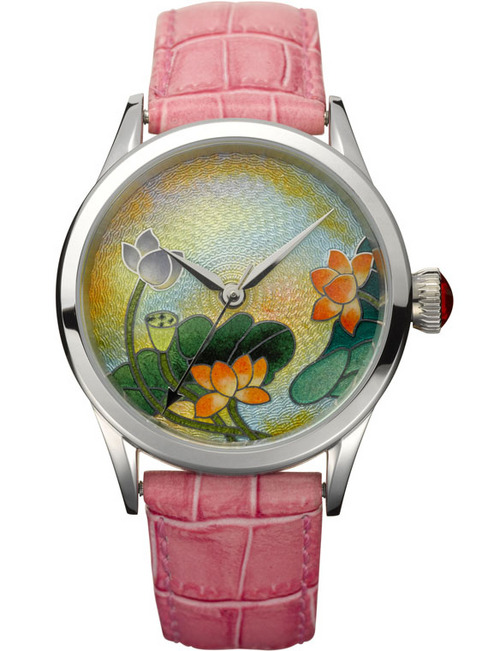 張同錄大師以中國帝王才能使用的龍鳳袍紋及皇家宮殿的半拱和璽祥瑞圖騰為創作靈感,特別繪製出男款的「王龍」、「丹鳳」以及女款的「牡丹」、「蓮花」、「百合」每個輪廓以深淺粗細不同的線條刻畫而成,栩栩如生的龍鬚和搖曳生姿的蓮葉,每個細節都將大師深厚的功力,發揮的淋漓盡致! 內填琺瑯的獨特在於其直接在金屬錶面上雕刻出圖案線條,並將寶石級的透明釉料點藍填料後,放入攝氏800度的窯中以明火燒製,由於琺瑯遇熱後體積微縮,因此需歷經數次反覆的填料及燒製後,最後再以打磨燒結的工序,才能將琺瑯與金屬達到完美合一的境界。EDOX大師琺瑯系列錶款以9999純銀作為胎體,並加入特殊配方,使琺瑯與銀胎結合時,不會翹曲變形或產生氣泡;此外,選用從各地蒐集而來菁華原礦,並以瑪瑙研缽搗磨成細膩粉末並過濾雜質,如此耗神所精選出的釉料將會使成品具有卓越的品質。因此,EDOX大師琺瑯系列每只面盤,都須歷時三個月才能完成,數量稀少而珍貴。大師琺瑯系列女錶以小巧精緻的面盤上勾勒出祥瑞花卉牡丹、蓮花、百合,靈感源自於紫禁城皇家宮殿的斗拱和玉璽祥瑞彩繪,他們在精湛的工藝中表現得栩栩如生,可以從細膩的線條中感受其動感與靈巧,顏色鮮亮而生動,深淺交織的多層次搭配呈現出寶石般的半透明的高貴質感。