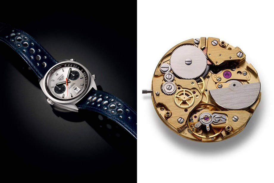▲Chronomatic Calibre 11 這是世界上第一款專利自動機械計時碼錶, Chronometic其名融合了Chronograph(計時碼錶)和Automatic(自動機械),搭載Edouard Heuer著名的1887振動齒輪。