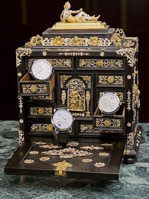 ▲Lange 1 Tourbillon Perpetual Calendar展示於由Boas Ulrich製造的櫃櫥上,約1600年。