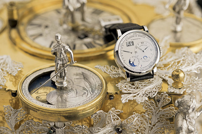 為了能確保把萬年曆顯示結合到Lange 1偏心錶盤之後的可讀性,A. LANGE & SÖHNE 研發團隊首創將月曆顯示放置於旋轉外環之中。另外,所有萬年曆顯示均具備瞬跳功能,令佩戴者無論於任何時間均能準確讀時。但是,這只手錶彰顯的並不止於薩克森的創意;手錶內624只精密部件的人手修飾亦表彰了這家薩克森製錶廠所傳承的當地工藝。沒有任何地方能比德累斯頓城堡內的綠穹珍寶館——「強者」奧古斯特的寶庫——更能讓人深刻體驗這些技藝。在2006年重新開放的珍寶館,展出一系列獨一無二的珠寶及雕刻藝術品,分佈於九間瑰麗的展廳之中;當中的珍品超過3,000件,在華麗的牆前列陣的數百個展櫃中或於華貴的桌子上自由展示。而這只21世紀的製錶傑作,則與當中的兩項名作並行展示。