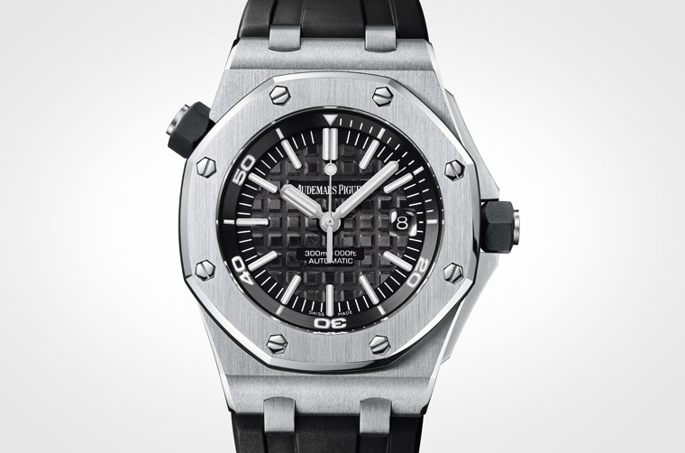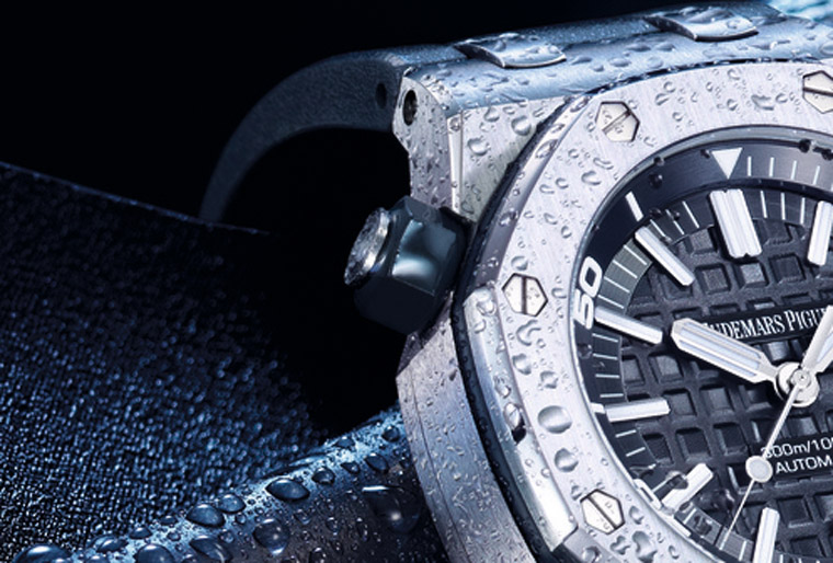 在最常見的計時功能外,愛彼於2010年推出防水性能達到300米的皇家橡樹離岸型Diver潛水腕錶,成為這一系列中防水密封性能最高的錶款。這款潛水腕錶通過ISO 6425標準認證,採用通過10點位置錶冠操作的內部旋轉錶圈記錄潛水時間,並對防水墊圈、錶殼、藍寶石鏡面等部件的厚度增大,錶圈六角形螺絲與底蓋螺絲上下對鎖,以最大限度保證腕錶的密封性能。