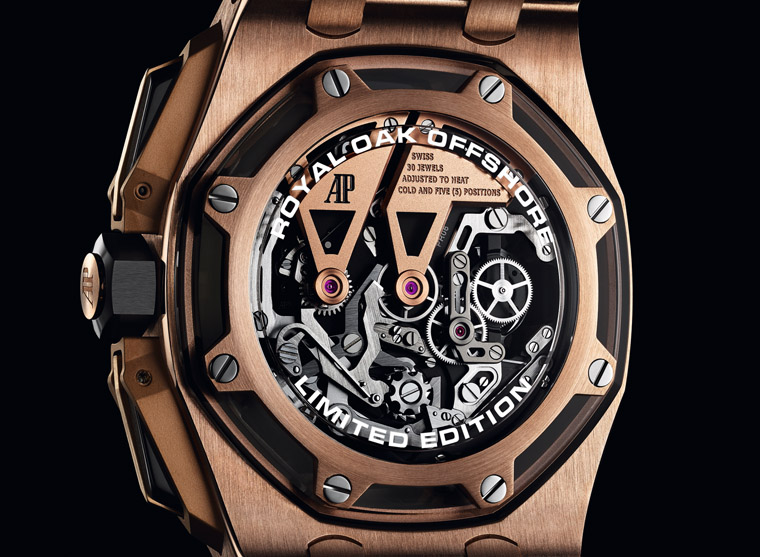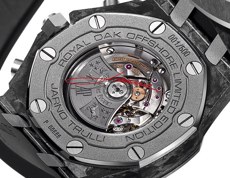 ▲編號Ref. 26202AU。透視底蓋的設計是2010年此系列的創新亮點,再加上有賽車手Jarno Trulli的簽名,更讓車迷為之驚豔。