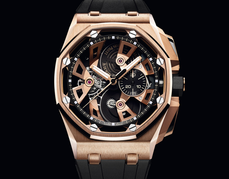 ▲編號Ref. 26421OR.OO.A002CA.01。全新的面盤結構設計,呈現建築的美感,搭配玫瑰金的錶殼和黑色的面盤,流露奢華的氣質魅力。此系列限量50只,極具收藏價值。