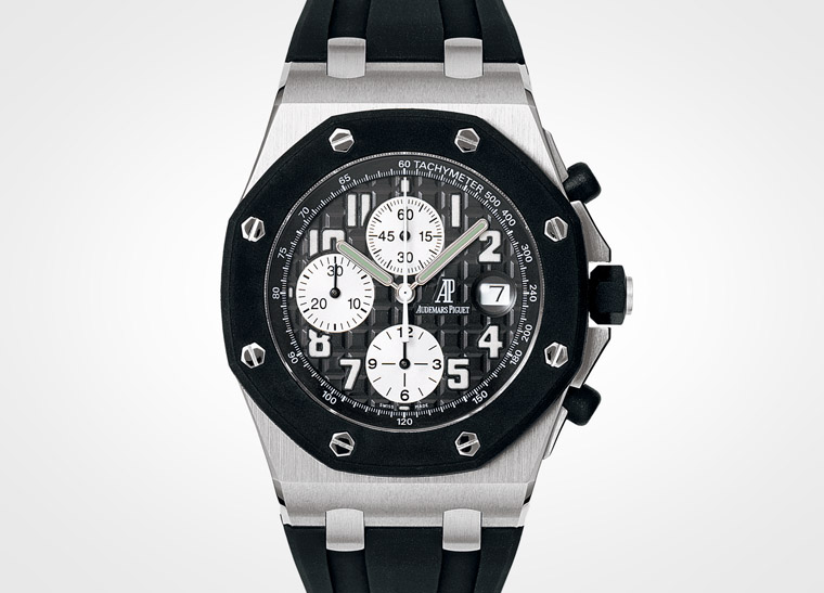 1972年,愛彼打破傳統製錶業的固有常規,推出皇家橡樹系列(Royal Oak),奠定了愛彼的傳奇地位。 1989年,設計師Emmanuel Gueit受愛彼委託,力求設計一款更大尺寸、結合多種材質、以展現鮮明運動設計與極致工藝的腕錶。 Emmanuel Gueit果斷選擇了相比皇家橡樹系列更大的錶殼尺寸——42mm,並採用外部可見的大尺寸橡膠防水墊圈彰顯出眾的防水性能:這款腕錶達到了當時所有計時碼錶的防水密封性能之最——100米。為進一步突出"Offshore"的特色,Emmanuel Gueit大膽引入橡膠材質製作兩枚計時按把,並以橡膠包裹錶冠外部以提高操作時的舒適度。1993年,愛彼首款皇家橡樹離岸型腕錶(Royal Oak Offshore)問世。這款腕錶以42mm不鏽鋼錶殼、外部可見的防水墊圈、帶有測速儀刻度的計時功能、以及當時的計時碼錶所具有的最高防水性能(100米)等特色成為奢華運動腕錶領域最具創新精神的代表作。本篇要來回顧ROO在25年的發展歷程中,曾經出現哪些里程碑式的作品,一點一滴累積成今日陣容齊全的AP運動錶代表作。