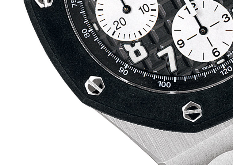 2002年,愛彼第一次將橡膠這一非傳統製錶材質應用於腕錶主要部件的製作,推出採用黑色橡膠錶圈的皇家橡樹離岸型計時碼錶。從第一只皇家橡樹離岸型腕錶開始,橡膠材質既已被應用於錶冠和計時按把的製作,編號Ref. 25940SK的錶款開啟了以橡膠製作錶圈這一主要部件的全新篇章,成就製錶業首創。