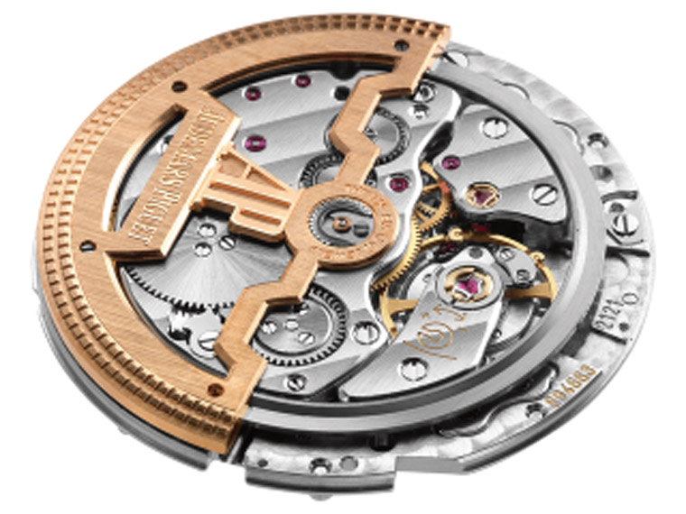 2121自動機芯是一代名機,因為它的前身Cal. 920是由AP、江詩丹頓、PP等三大品牌所共同設計,並委託積家所生產的一款機芯,這也是目前現行錶款中唯一被錶壇三大巨頭共同使用的一枚機芯,但後來Cal. 920的所有權落入AP手裡,因此被品牌改制成2120自動上鍊機芯,這枚機芯是愛彼闖蕩錶壇使用迄今的傳奇機芯,具有四十多年的歷史,卻不改其硬漢本色,走時輪系以俐落大方的時、分配置,加上雙向上鍊系統、Gyromax砝碼微調擺輪、兩組KIF避震器,讓整枚機芯的實用效能更攀上一個級數。2121機芯承襲了這樣的優良血統,但在功能上多了日期模組,因此厚度也曾了一些,但還是維持在能歸納為超薄自動上鍊機芯的範圍(3.05mm),現代版一改原作的實底蓋而啟用透明底蓋,讓人有機會一睹名機風采。