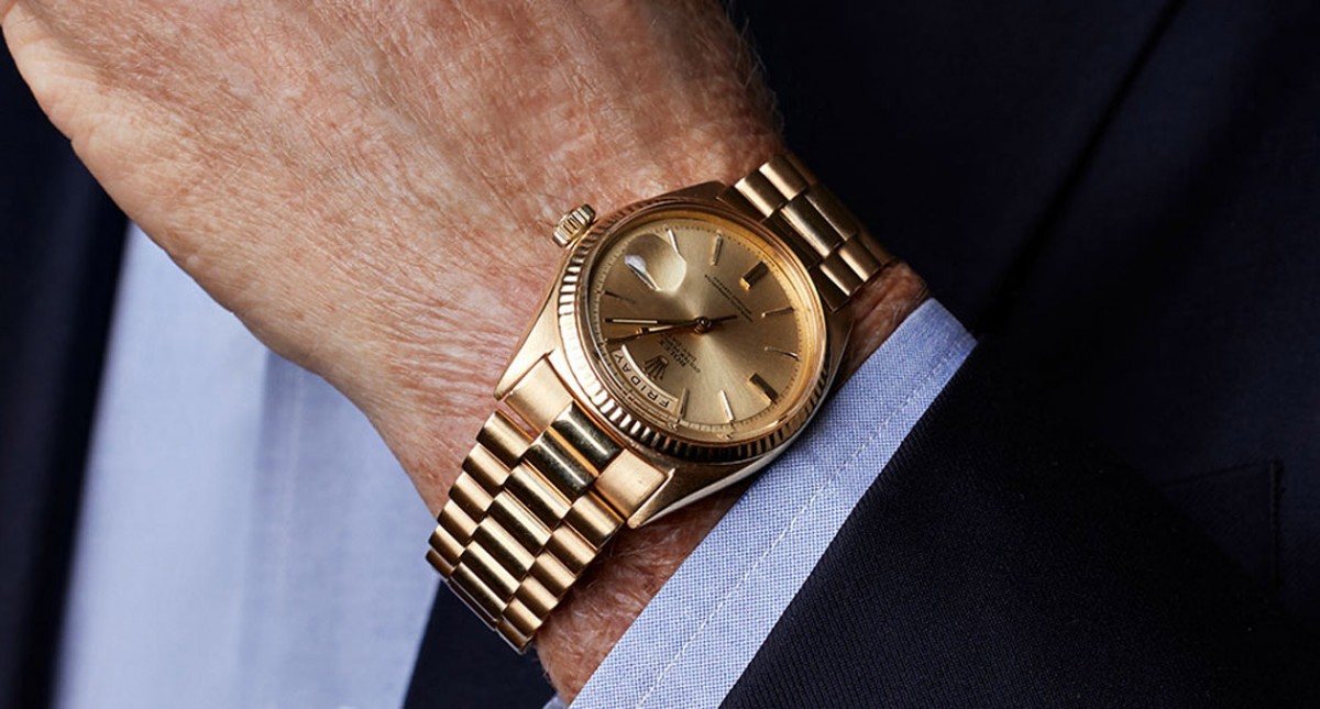 ▲1966年受到勞力士邀請參加酒會,品牌並承諾贈送尼克勞斯一只腕錶,他聽從Gary Player的建議挑選了一款K金的Day-Date,至此一戴超過半世紀,最近更考慮將其拍賣作為公益之用。