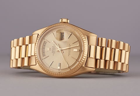 1966年,三巨頭在東京參與加拿大盃(Canada Cup)賽事。Palmer、Player和尼克勞斯都出席了勞力士酒會,作為謝禮,勞力士便讓尼克勞斯隨便挑選腕錶。他選擇了此款金色的Day-Date,因為那時已是勞力士代言人的Gary Player告訴他:「這是最佳的腕錶。」自此,尼克勞斯便不論場地一直佩戴腕錶。它見證尼克勞斯勝出的所有賽事,以及在世界各地獲得的榮銜。這只錶到訪過無數特別的地方,尼克勞斯在這之前還未擁有腕錶,即使現在他有眾多其他腕錶,但尼克勞斯最常戴的還是Day-Date。