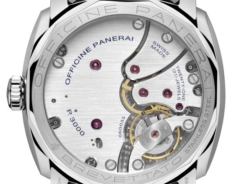 ▲無論黑面或白面均搭載品牌自製P.3000手動上鍊機芯,機芯震頻為21,600vph,並採用雙發條盒輸出三日動能。
