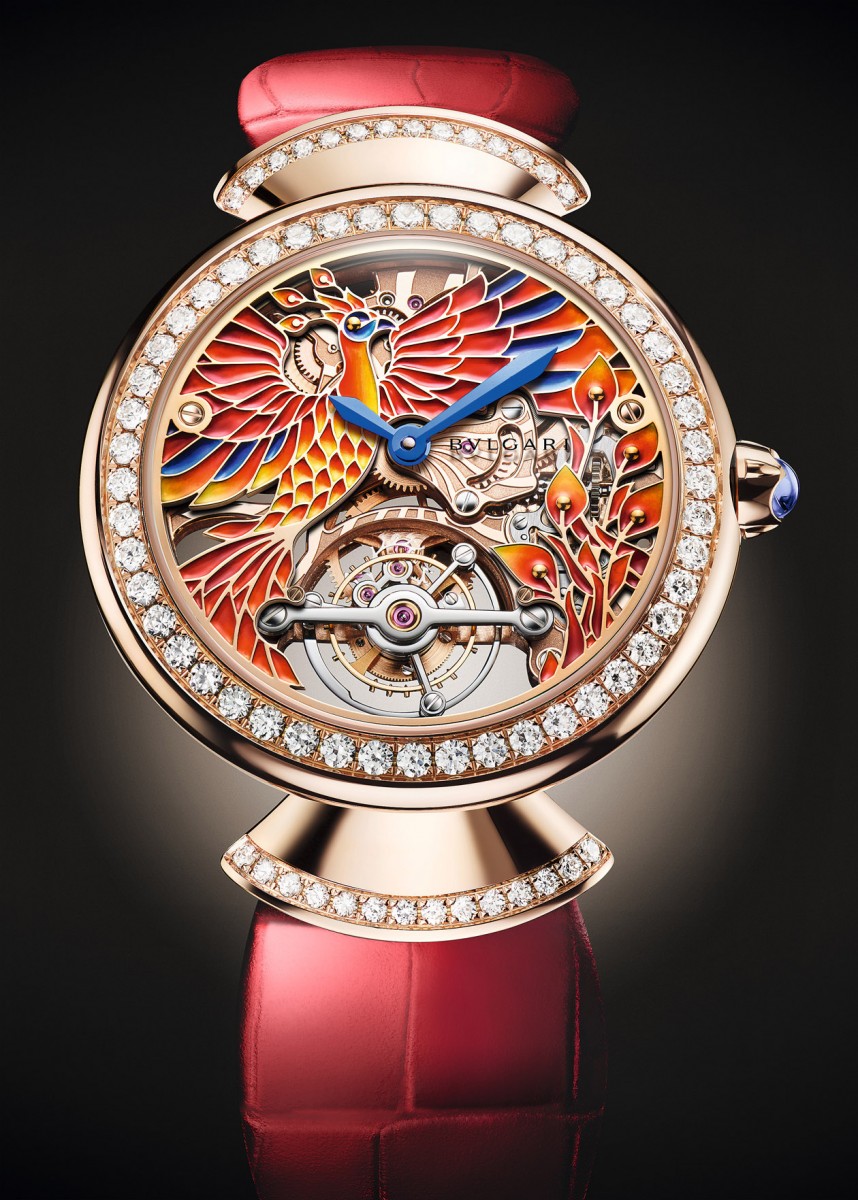 寶格麗於1918年推出首款珠寶腕錶創作:飾以耀眼美鑽、精巧亮麗的鉑金珠寶腕錶。此後,寶格麗便將自身定位於高級女錶界中的核心品牌,隨後陸續推出聞名遐邇的Serpenti與Lvcea系列腕錶。為慶祝100週年特別推出的Diva Finissima三問女錶,結合義大利珠寶藝術美感與瑞士製錶工藝,以品牌精湛的寶石鑲嵌工法,配合日本傳統的手工(Urushi)漆藝面盤,內部搭載Finissimo三問機芯,呈現全球最輕薄的三問女錶。