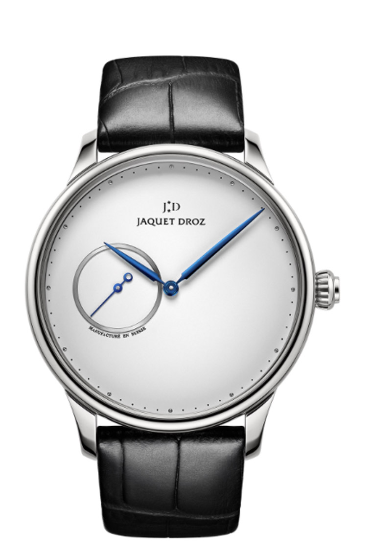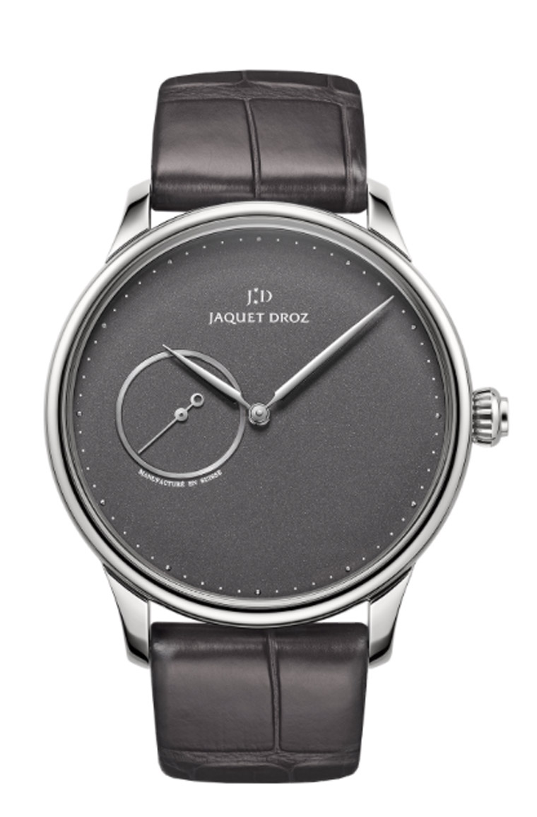 ▲雅克德羅推出兩款Grande Heure Minute腕錶,分別搭配岩灰色與銀白色面盤,簡潔的小三針格局,將時間的優雅從容展現於錶主眼前。