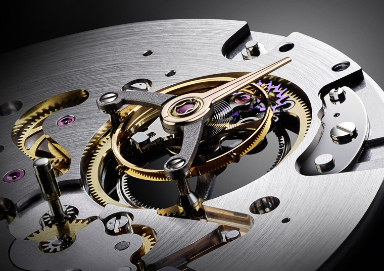 ▲T3000機芯採用矽材質零件、降低擺輪震頻等設計間接助長動力儲存提升到65小時,超越前兩款自製機芯作品,此外陀飛輪本身還具備停秒功能,有助於更精準的走時目的。