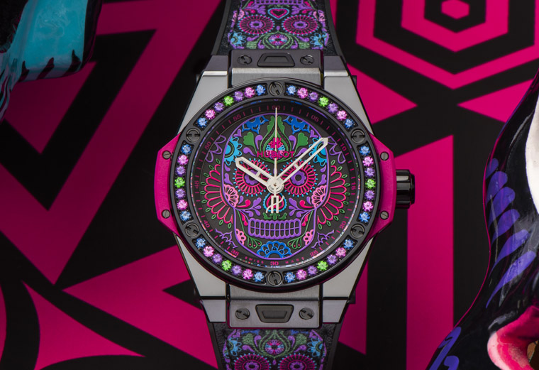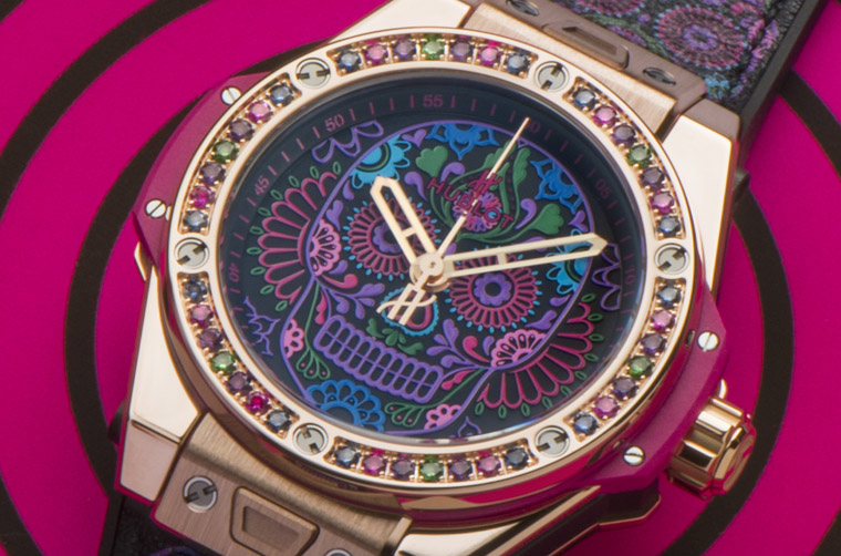 ▲宇舶在第11屆墨西哥SIAR鐘錶展上發表新作Big Bang One Click Calavera Catrina,以普普藝術風格詮釋亡靈節特有的骷髏圖騰。