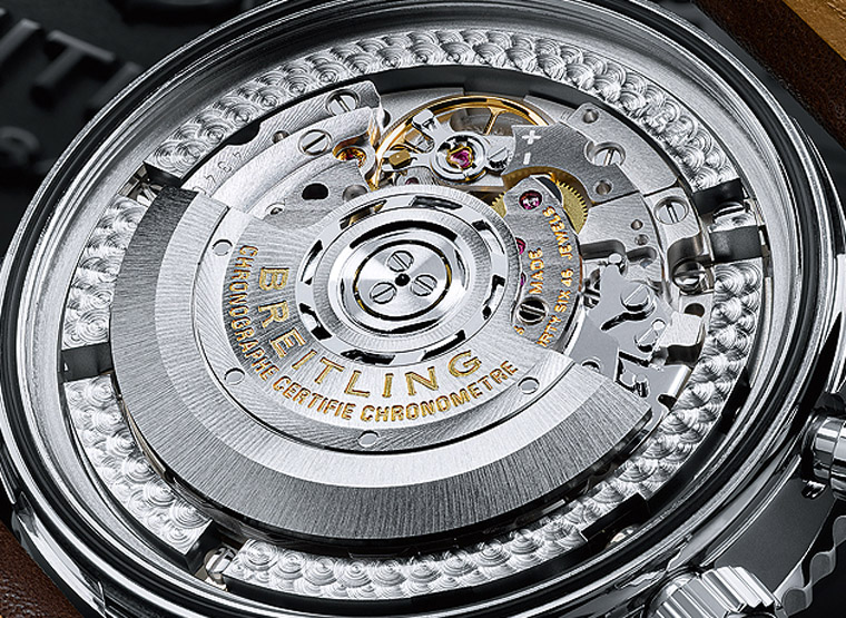 B03追針機芯在2017年首度問世,基本上就是在B01機芯上加裝追針模組,不過百年靈製作這枚機芯時有個特色,就是他們只用了28枚零件來製作追針模組,其中還包含兩項專利設計,比起其他家的追針機芯顯得更為精簡,也更有利於量產。2018年這款專賣店限量版錶殼依舊用不鏽鋼材質製作,大小也維持在45mm不多不少,比起去年的褐色面盤,這款如今使用的是深灰色單色面盤搭配黑色皮錶帶,第一眼看起來雖然沒有那麼搶眼,但是比耐看和搭配性,它一點都不會輸人。