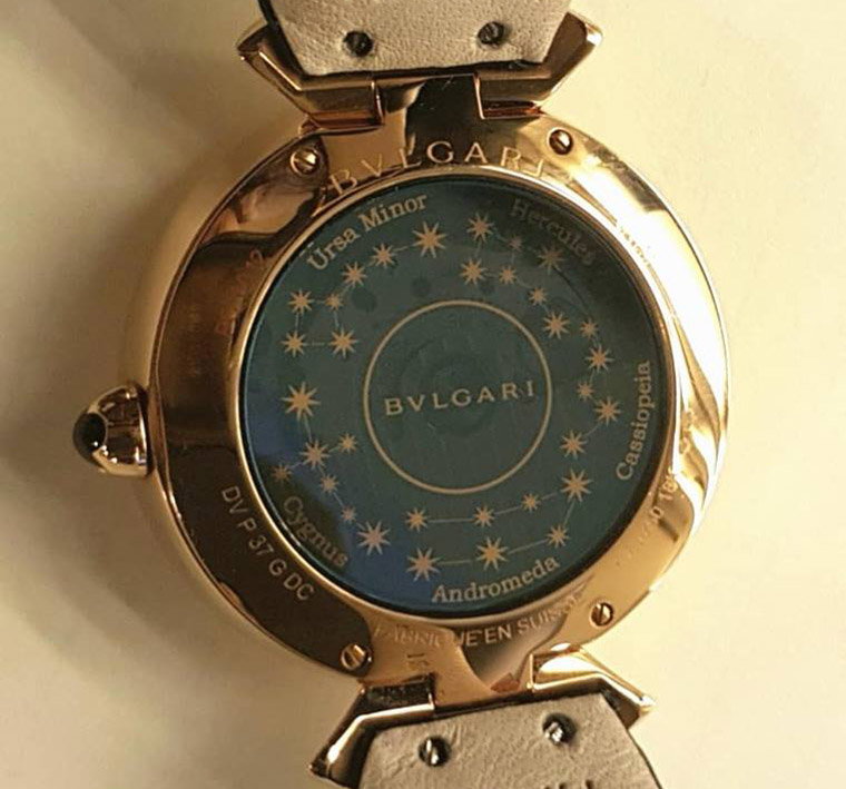 ▲錶背採用煙燻的方式,有半透明效果,呈現五個北半球星座。