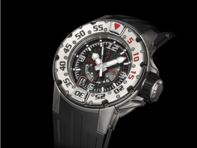 繼創制出可適應嚴苛陸地環境,賽道G力以及開闊海域的多款時計之後,RICHARD MILLE還研究了海洋的深度,並因此推出了以下的潛水手錶款。這些新式潛水錶,適合潛水人士並能迎合深海的需求。初看之下,他們給你的第一印象竟是匪夷所思的簡約,但實際上卻要複雜得多。從視覺上來看,這幾款潛水錶打破了品牌傳統的酒桶形錶殼。這新突破直接源于技術上的需要. 因防水能力為30個大氣壓(300米),符合ISO6425潛水錶標准如此之深度決定了這款新品只能采用圓形錶殼。與其他各款不同,這潛水錶款不僅外形獨特,而且能夠毫不費力地應付地球上最惡劣的一種環境。