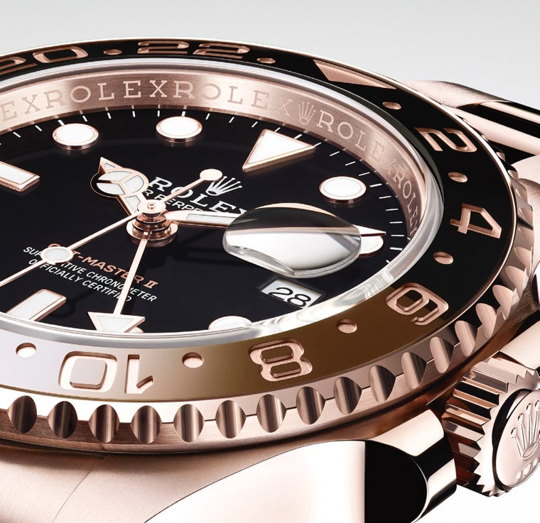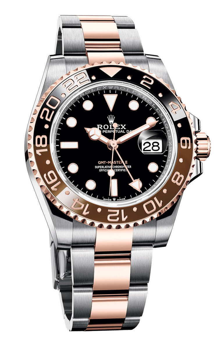 ▲勞力士2018年首次以18ct永恒玫瑰金材質製作GMT-Master II錶殼,就連錶圈的棕黑雙色也是Cerachrom陶質字圈最新的研發成果。