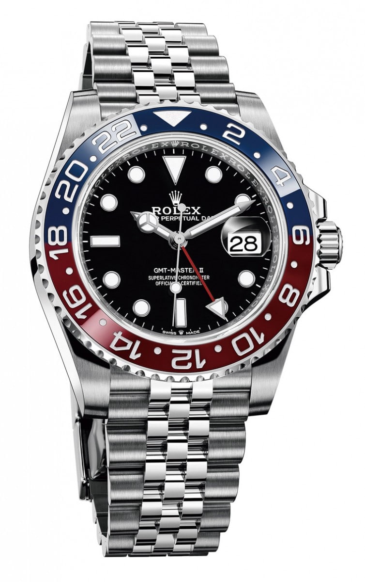 GMT-Master II最早於1955年問世(那時還稱之為Oyster Perpetual GMT-Master),當年具備優異防水性能的勞力士運動錶早已聲名大噪,各領域的專業人士都希望擁有一只精良的勞力士錶做為他們工作及日常的可靠搭檔,就連20世紀中期美國航空龍頭——泛美航空公司(Pan American World Airways)也不例外,他們找上了勞力士希望能與其合作開發出適合飛航從業人員佩戴的指定用錶,在這個機緣下促使勞力士開發出GMT-Master腕錶,錶款在品牌大三針與日期顯示的基本功能上增添了兩地時間顯示,對於時常在全球各地跑透透的機組人員來說,能夠清楚掌握所在地與原居地時間再重要不過,最初勞力士把象徵泛美航空的藍色加入錶圈設計,再搭配與美國有關聯性的紅色以及白色刻度,從此奠定GMT-Master百事圈的經典身影,順帶一提,這款錶也是勞力士首度採用放大日期顯示的處女作。