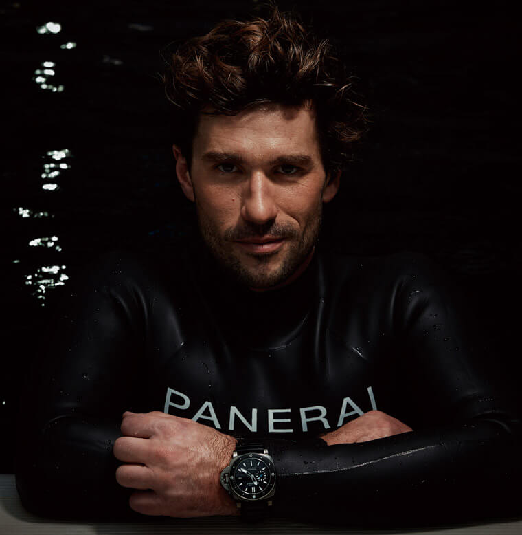 ▲打破四項世界紀錄、世界自由潛水冠軍的法國自由潛水好手Guillaume Néry獲邀出任沛納海品牌大使,佩戴PAM01389腕錶出鏡影片。
