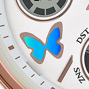 ▲LOV-18A的BABY-G款則有象徵普賽克的蝴蝶圖樣