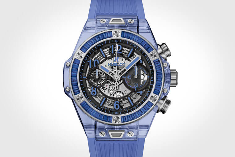 ▲藍寶石水晶過往由於硬度高、切割與加工不易,因此錶壇較少出現以這類材質製作錶殼的案例,直到宇舶將融合的藝術精神應用在透明錶殼的研發後,品牌開始提高這類作品的數量,讓喜歡透明錶殼的同好能有更多選擇。