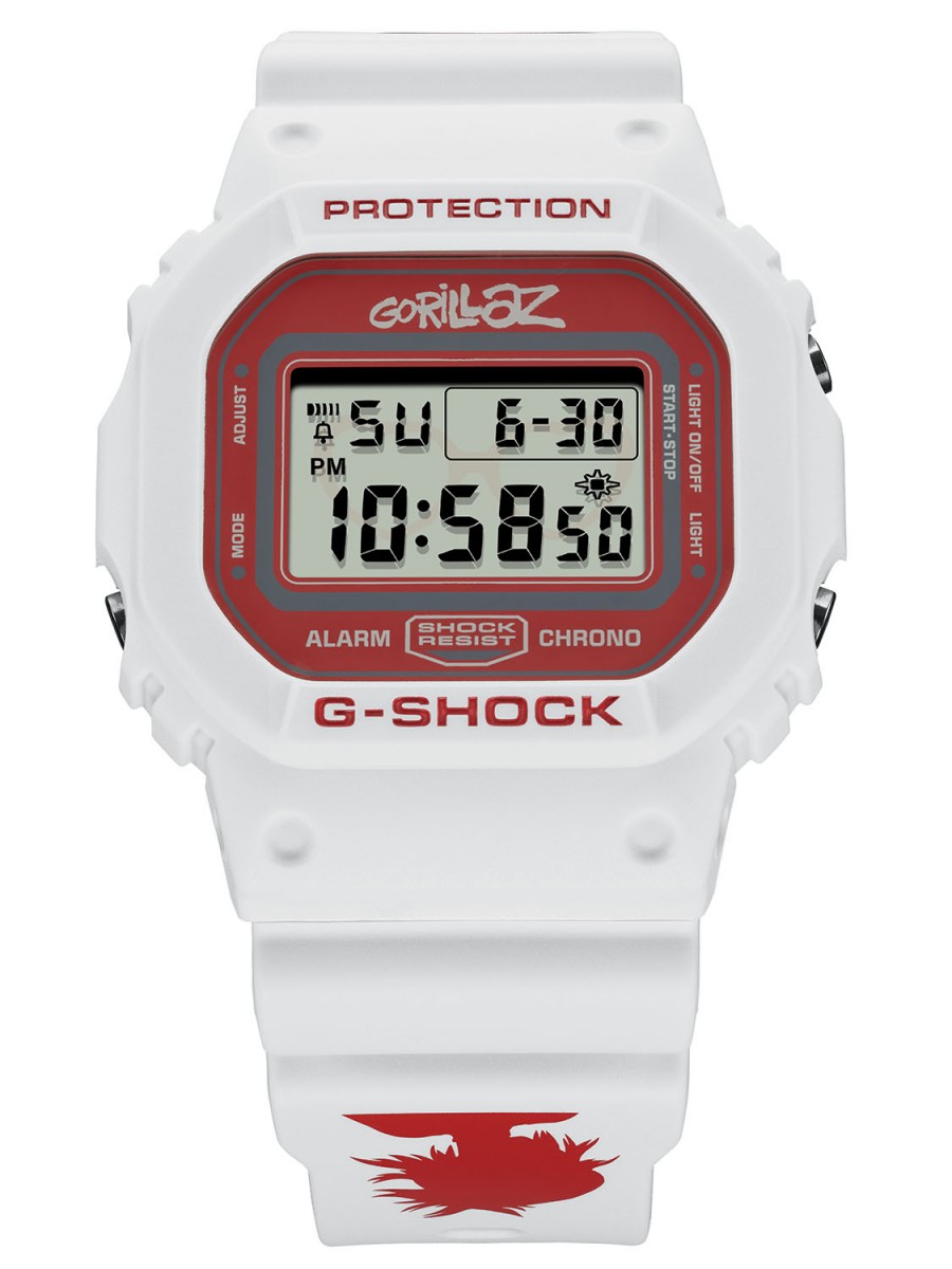 Noodle版與2D 、Murdoc Niccals 同樣採用經典的DW-5600系列,白色的錶身搭配紅色錶盤,活潑帶點俏皮的設計,而Russel Hobbs 版則採用GX-56系列,酷黑超大錶徑,打造粗曠帥氣風格,另外還搭載太陽能電力系統。
