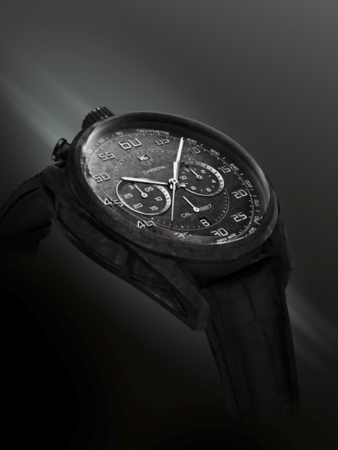 豪雅全新Carrera Carbon Matrix Composite(CMC)碳複合材料概念計時碼錶,是1963年Jack Heuer以賽車運動為靈感創製的Carrera計時碼錶面世以來,最具前瞻視野的新演繹;此新作採用一級方程式賽車及航天工業界研發的碳複合材料製作,並裝配品牌自製計時機芯,具有輕巧及超卓抗磨損特性,其錶殼設計以屢獲殊榮的Carrera Mikrogirder計時碼錶為藍本,錶殼、錶背及錶圈以抗磨損碳複合材料製作,將手錶設計及當代製錶技術提升至更高境界。