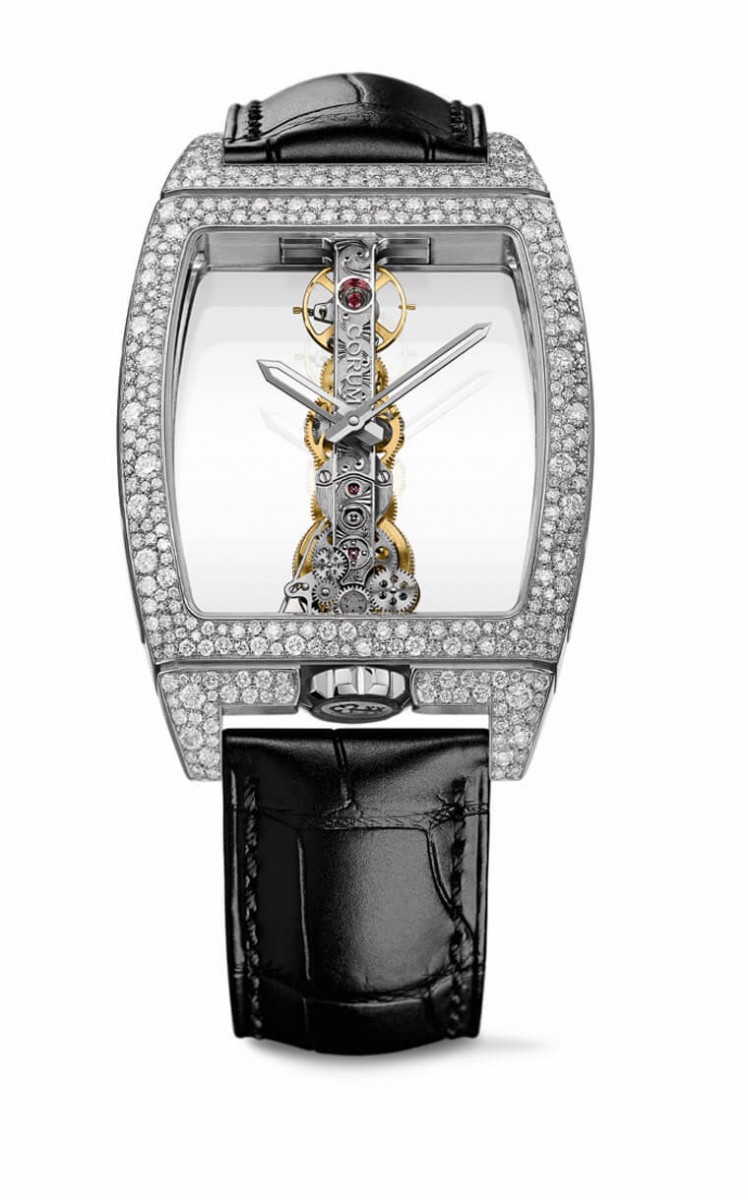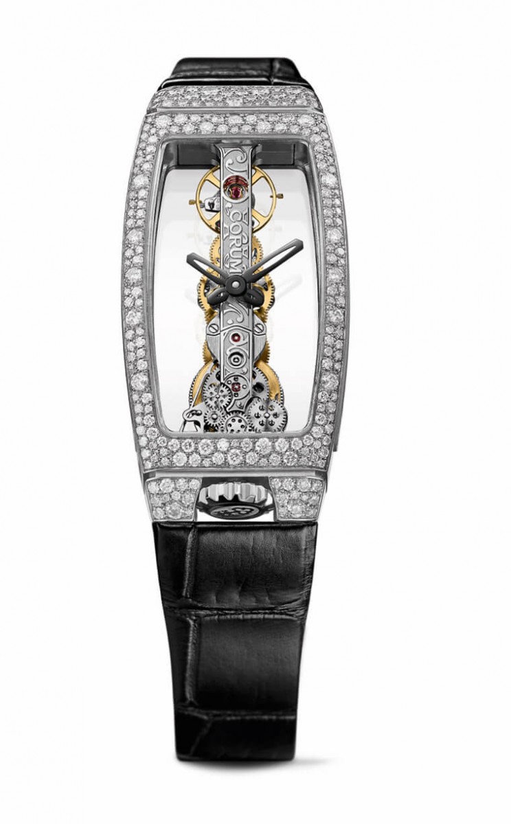CORUM崑崙錶最近推出了兩款全新金橋腕錶,採用新型「雪花」鑲嵌工藝裝飾,兩款腕錶新品為金橋腕錶和金橋女裝腕錶。這兩款腕錶的錶殼,包括錶冠在內整體均鋪鑲精緻美鑽,與垂直搭載於錶殼內,透過雙面防眩處理藍寶石水晶錶鏡清晰可辨的長方形機芯相映成趣。