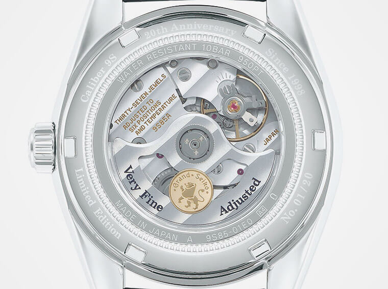 事實上GS在V.F.A.之下還有所謂的Special規格也是屬於特別調校機種,現代GS在過去十年間推出過不少採用此一規格的產品(不過都是限定版),包括這次9S機芯20週年的眾多紀念款當中也包含了一款是屬於Special規格的。現代GS的標準精度規格是日差-3~+5秒,當初設定這樣的數字就是要比C.O.S.C.的-4~+6秒再高上一級,而Special則是進一步提升到-2~+4秒;過去V.F.A.所設定的標準是±2秒,不過也許是考量到9S機芯本身的癖性,這次GS提出的V.F.A.乃是定義在-1~+3秒,雖然快慢的比例不同,但誤差幅度同樣是抓在4秒以內。