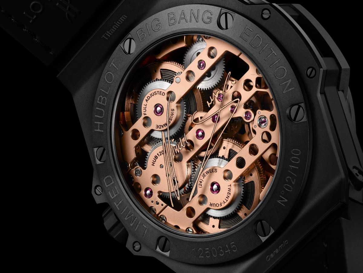 黑陶瓷材質/HUB1201手動上鍊機芯/時、分顯示/雙動力儲存顯示/藍寶石水晶鏡面/防水100米/錶徑45mm/限量100只/參考價:NT$ 749,000