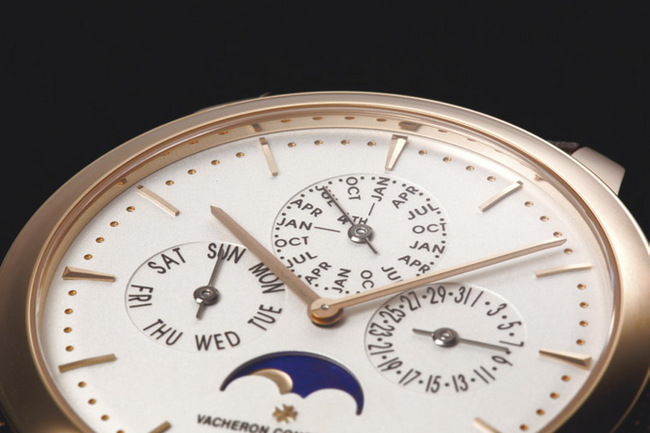 之前筆者曾經在本誌的其他單元談過VACHERON CONSTANTIN江詩丹頓新一代的基礎自動機芯2450/2460,以及近代他們家的生產體制,當時我們提到江詩丹頓從2006年開始以2450取代既有的基礎自動機芯1120,並且廣泛地加裝各種複雜功能模組,幾年間普及到品牌旗下的各個產品線。這款Patrimony Contemporaine的萬年曆是2011年的產品,當時2450/2460的體系在江詩丹頓的產品線中已經逐漸成型了,然而這款裝的仍然是1120加裝萬年曆模組的機芯。錶廠在推出新世代機芯後又回頭用舊型號的例子並不罕見,這種現象有幾個可能性:從生產的角度來看,有可能是基於成本考量——一般而言新機芯的成本都會比較高,不過也有可能是舊機芯的庫存還沒銷完的緣故。