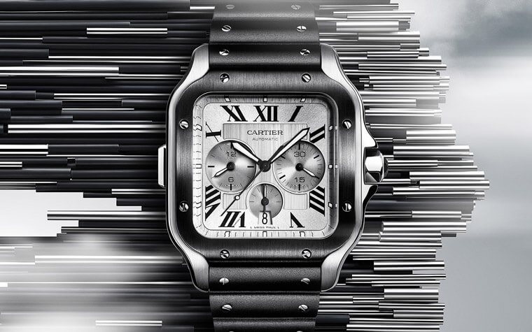 CARTIER卡地亞在2018年成功帶回招牌飛行錶系列Santos de Cartier,品牌一方面保持Santos腕錶的方型錶殼與錶圈上外露的固定螺絲等特色元素,另一方面針對錶殼線條全新設計,搭配時下流行的錶帶快拆系統,再次擦亮首款飛行錶的招牌。2019年卡地亞乘勝追擊,再次推出多款Santos新作,其中有別於去年的基本功能與鏤空款式,品牌今年新增了計時功能,替系列帶來更多元的選擇。