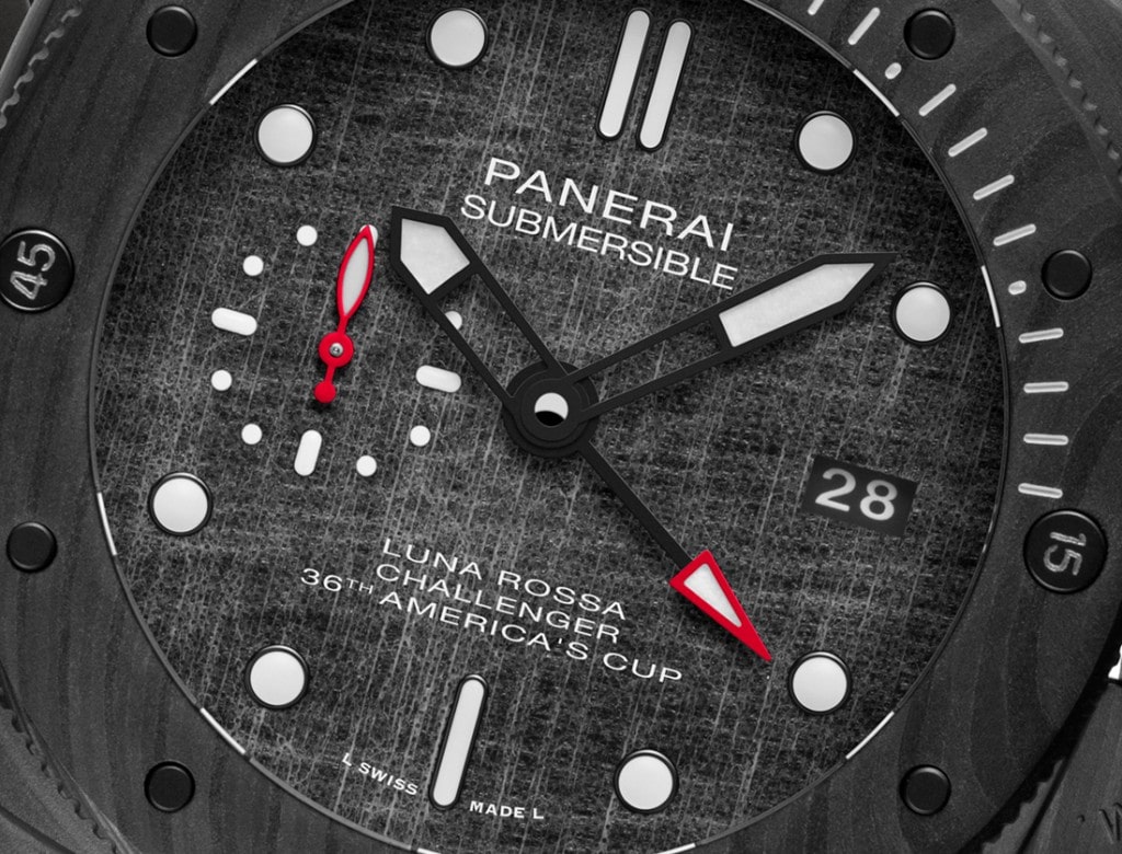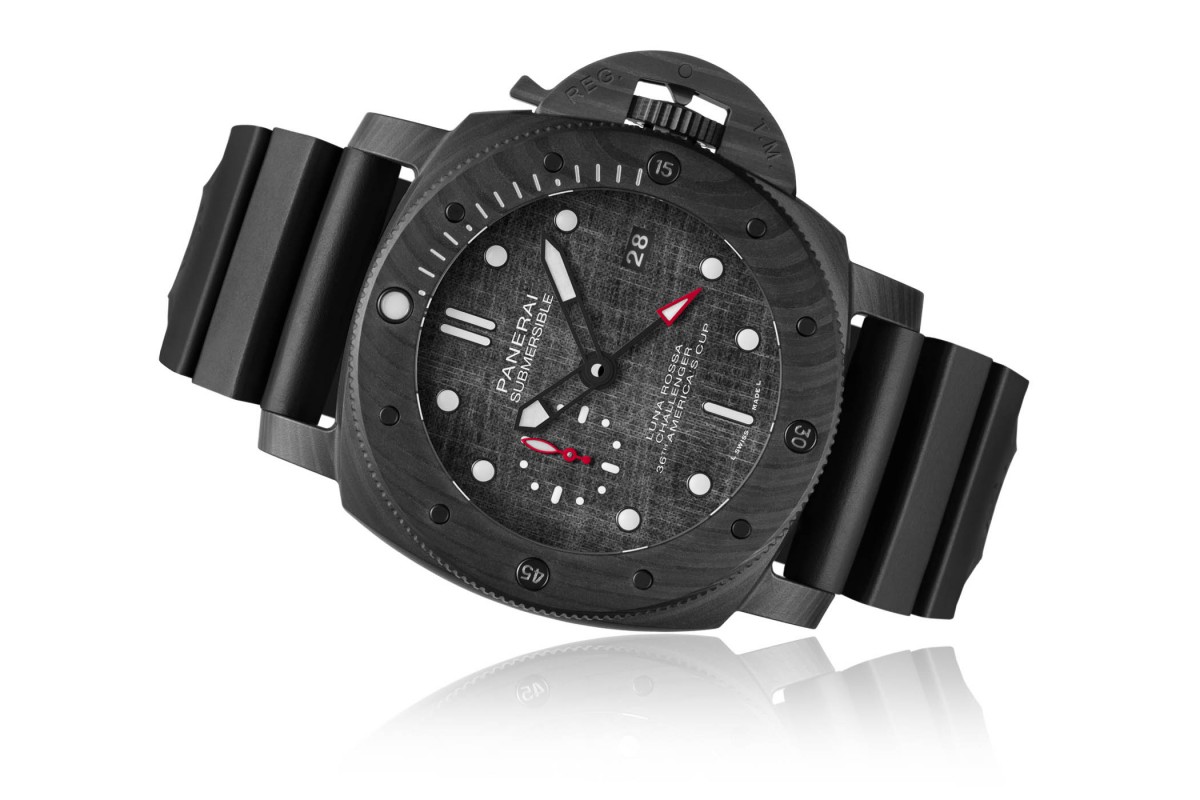 系列其中Submersible Luna Rossa專業潛水腕錶,是首款奠基於品牌與第36屆美洲盃帆船賽的紀錄挑戰者Luna Rossa 船隊的合作策略的沛納海腕錶。這款潛水腕錶的防水深度達300米,錶殼採用Carbotech鑄造,該款 嶄新物料由沛納海率先引入高級製錶界,以碳纖維為基礎成分,質感無比輕盈,可抵禦外來衝擊和防止磨蝕。 AC75單體帆船的船身,同樣採用碳纖維物料製造,其圖像鐫刻於腕錶的鈦金屬錶背上,與Luna Rossa標誌 和"America’s Cup"字樣相映成趣。