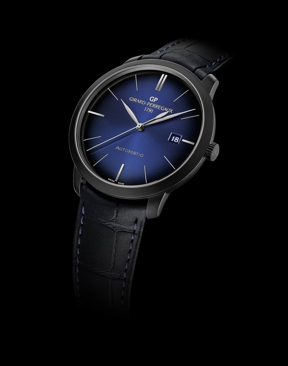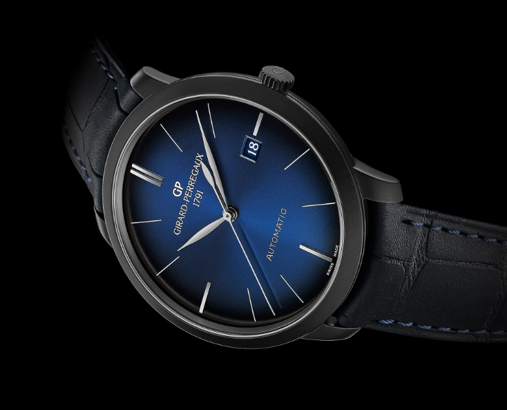 黑色DLC塗層噴砂不鏽鋼材質/GP03300自動上鍊機芯/時、分、秒、日期顯示/藍寶石水晶鏡面、透明底蓋/防水30米/錶徑40mm/限量149只