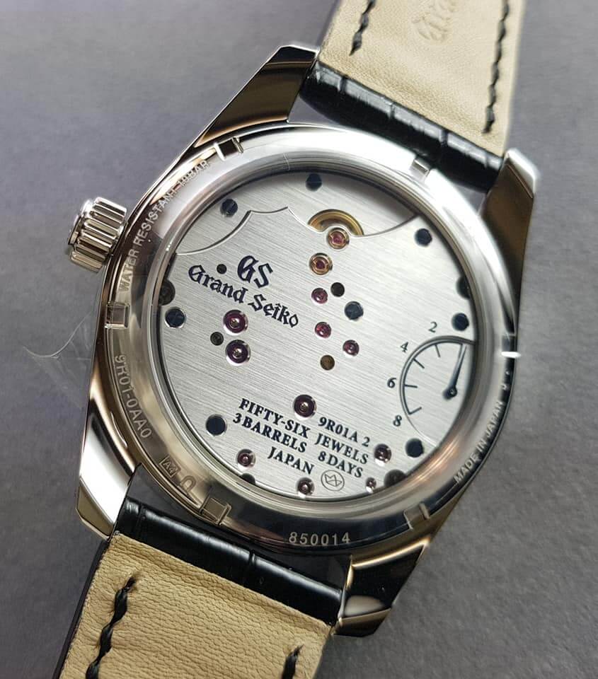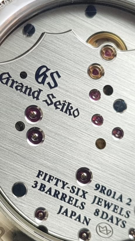 體驗大和職人製錶溫度,Spring Drive 8日鍊展現日本文化與意境之精髓。冷間鍛造的鉑金錶殼,以純手工稜線鏡面拋光而成。面盤以獨創的鑽石塵微粒子處理。指針為多角度純手工研磨,盡顯極致工藝。三個發條盒以少見的倒品字形排列,有利動力傳輸。機芯的大型夾板代表富士山,磁車輪為旭日,能量顯示代表信州時計工房鄰近的諏訪湖。