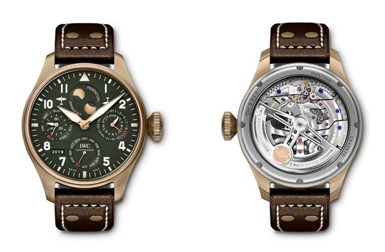 IW503601/青銅材質/時、分、小秒、日期、星期、月份、年份顯示/萬年曆功能/南、北半球月相顯示/藍寶石水晶鏡面、透明底蓋/防水60米/錶徑46.2mm/參考價:NT$ 944,000