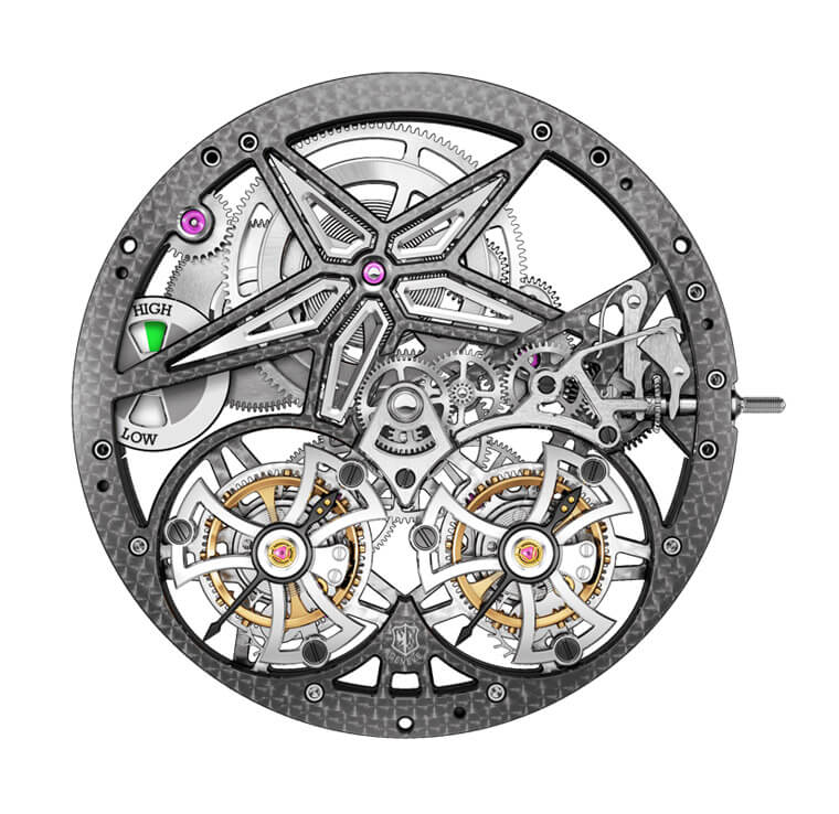 這次羅杰杜彼和倍耐力又一次發揮持續創新者的實力,此款腕錶作品具備獨樹一格的運動美學和聞名遐邇的鏤空標誌,其所搭載榮獲日內瓦印記認證的RD105SQ機芯並配有高級鐘錶領域中的高端複雜功能——雙飛行陀飛輪。