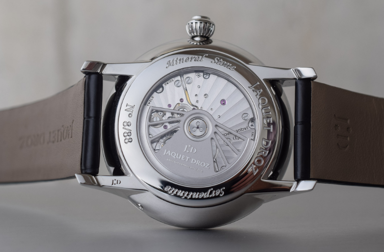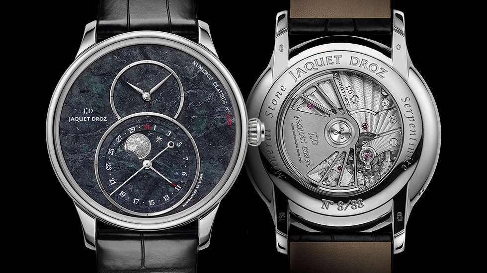 ▲蛇紋石打造錶盤,這種岩石質硬易碎,必須由具備專業技藝的雅克德羅工匠們來完成切割。