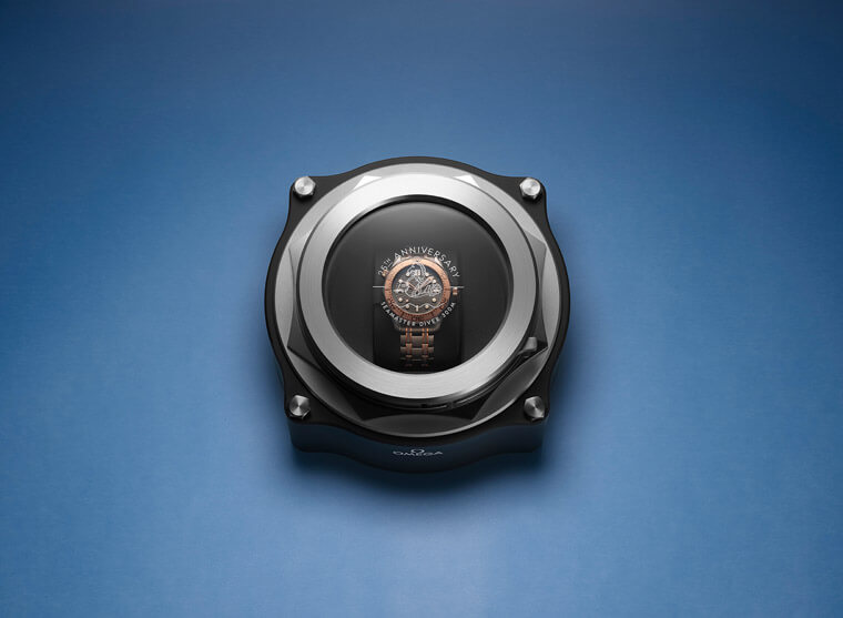 原版海馬潛水300米腕錶在1993年引入一種名為鉭的獨特金屬。最常被用於電子產品與醫療設備的鉭是一種光亮的藍灰色金屬,它比金更稀少、比鋼更堅硬,而且具備高抗蝕性。此外,鉭的加工難度特別高,因此在鐘錶產業很少被使用。鉭的獨特色澤完美搭配革命性海馬潛水300米腕錶設計,並成為原版錶款深受喜愛的特色之一。如今,OMEGA重新引入此種稀有金屬打造全新腕錶。