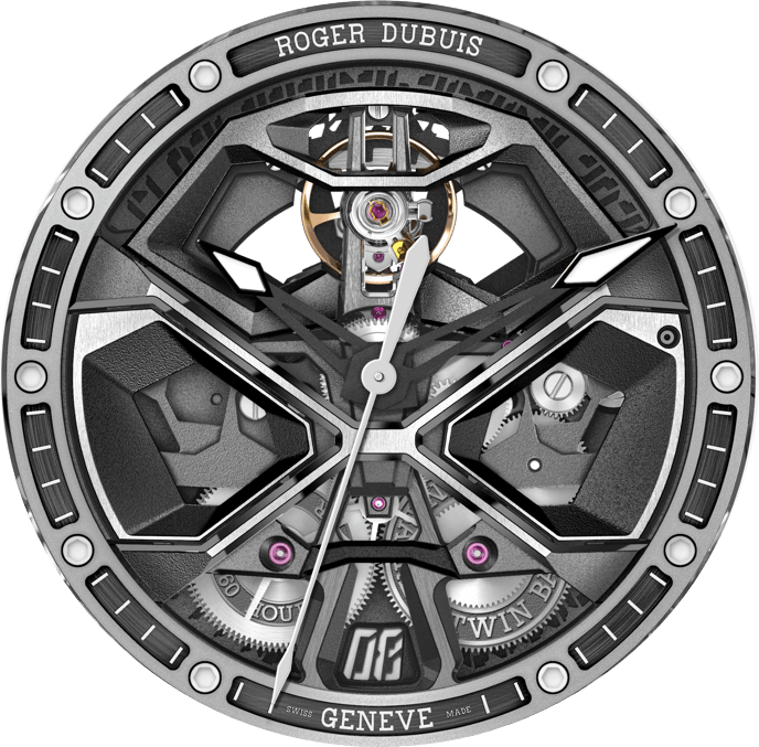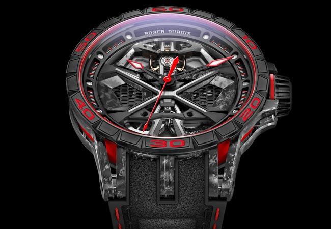 Excalibur Huracán腕錶是在結合高端科技與從汽車世界獲取靈感的前衛設計風格下所創造出的作品,其所搭載的RD630自動鏤空機芯上12度角傾斜設置的擺輪,是品牌與藍寶堅尼合作的標誌性機芯元素。受Huracán跑車輪圈啟發而創造出的360度自動盤則體現了疾馳中的超跑所散發出的速度感。