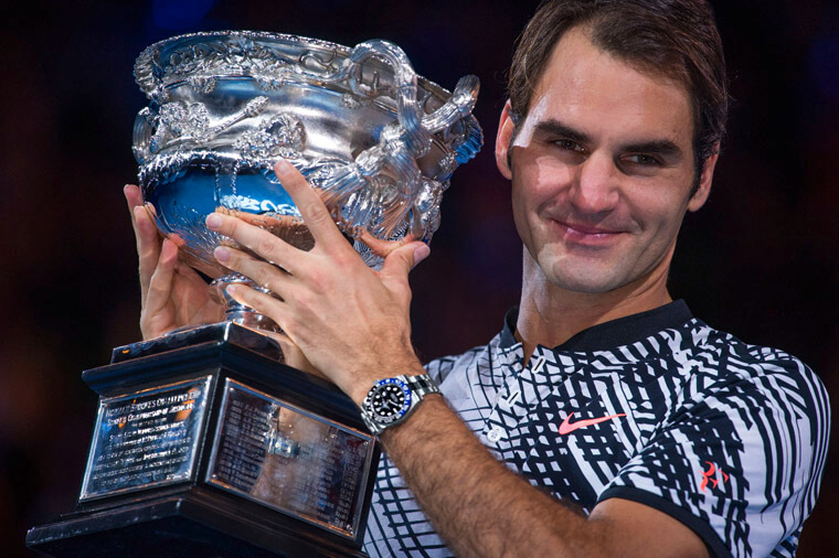 在2018年一開年的澳洲網球公開賽上,費德勒延續上一年的氣勢,一路挺進到澳網冠軍戰,他在決勝的第5盤克服1:3的局數落後,上演大逆轉奪冠(擊敗的對手為Marin Cilic),值得一提的是,這次的澳網冠軍正是費爸的第20座大滿貫金盃,這次他依舊選擇了藍面的Sky-Dweller Ref. 326934。