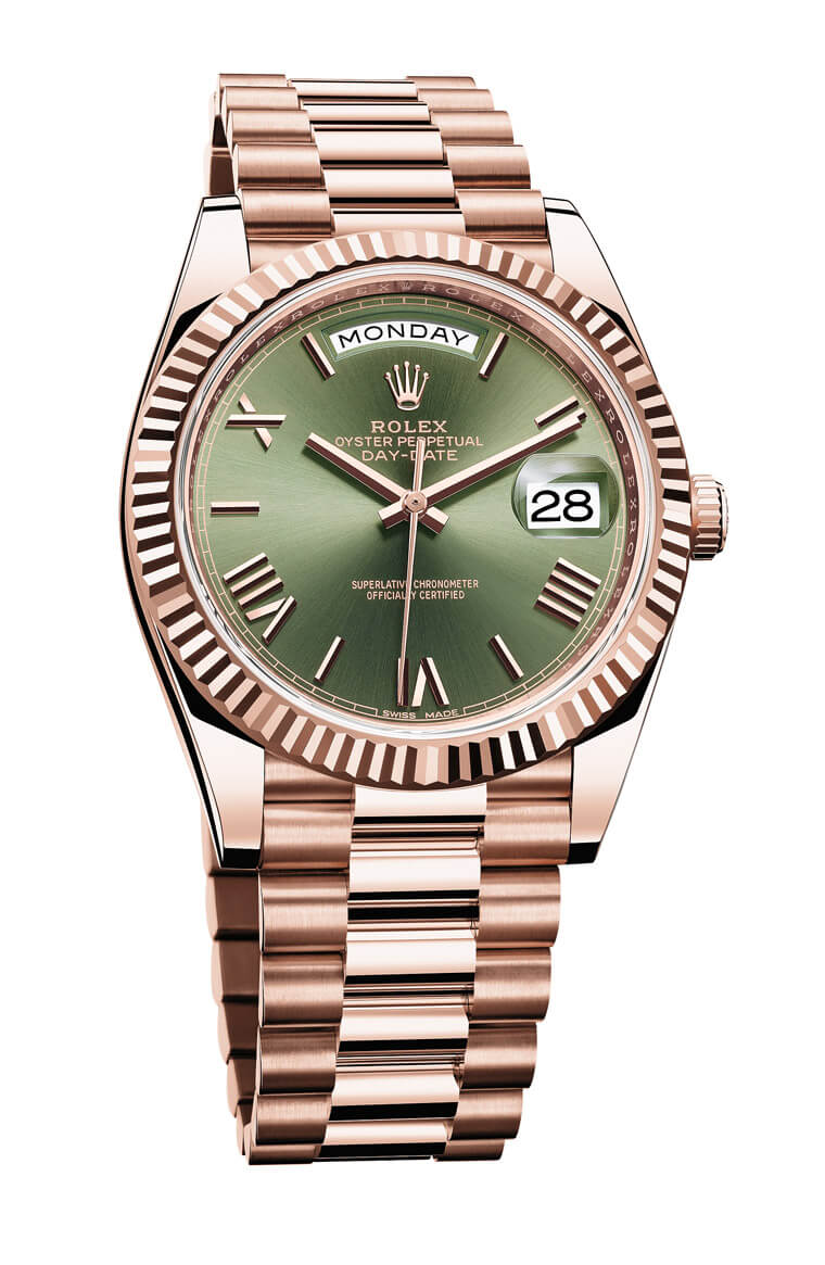 18ct永恒玫瑰金材質/3255自動上錬機芯/時、分、秒、日期、星期顯示/頂級天文台精密時計認證/藍寶石水晶鏡面/防水100米/錶徑40mm/參考價:NT$ 1,302,500