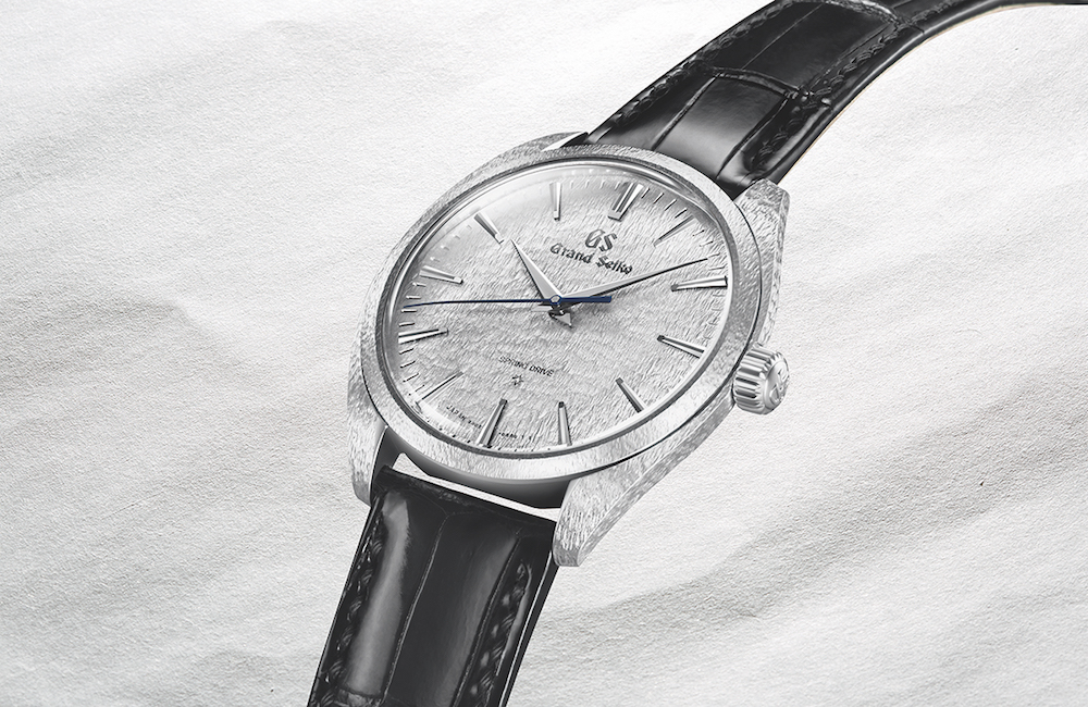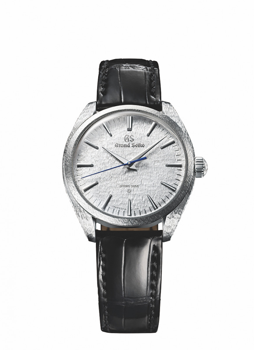 SEIKO的微型藝術工房Micro Artist Studio,呈現9R02機芯,同一發條盒配備雙重平行發條,並採用獨特Torque Return System扭力回饋系統,提供長達84小時的動力儲存。錶殼使用950鉑金製造,厚度僅 9.8 mm。時、分針和時標以14K白金製作。GRAND SEIKO Logo、時標和所有其他標記皆採用陰刻,動力儲存顯示透過藍寶石水晶錶背可見,旁邊的發條盒形狀呼應製作工房鹽尻市的市花桔梗。面盤的著名雪花圖案靈感源自信州的美麗雪花,面盤的銀色光澤與鉑金錶殼精緻的雕刻相輔相成。