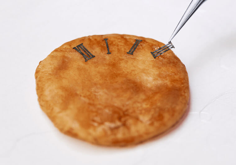 ▲仔細看,面盤上的時標與Logo,竟然是用精細切割過後的海苔黏貼而成,超有fu的設計展現出最誘人的仙貝滋味。