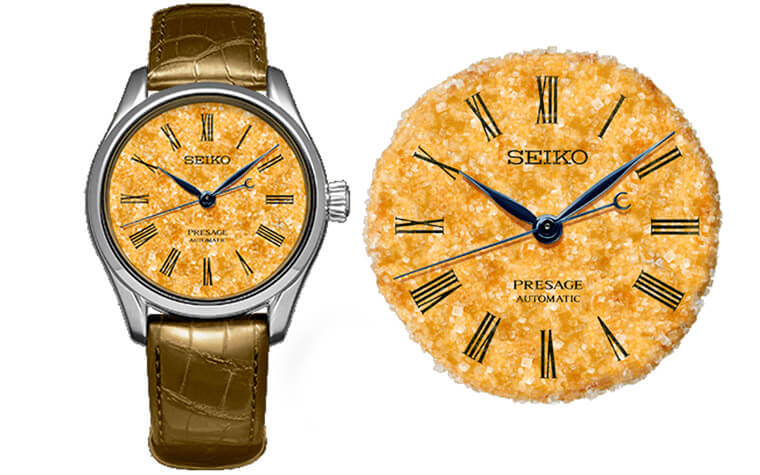 ▲SEIKO推出世界首創、結合日本傳統零食的Presage仙貝手錶,展現品牌不輸歐洲精密製錶的過人創意和美學。