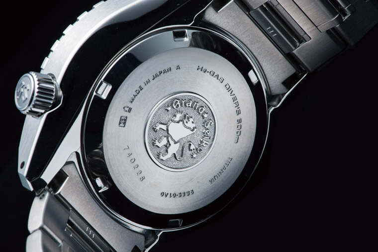 GS這款專業潛水錶從規格上來看就有好幾個地方滿佔優勢的。首先,防水高達600米的規格就已經達標了;其次,這款採用的防氦方式並非常見的排氦閥門,而是使用無閥防氦——搭載高氣密錶殼與L型防水墊圈,這是GS獨家的技術,藉此防止水中氮氣滲透;第三,SBGH255使用軟鐵製成的內殼,藉著內殼包覆機芯以達到抗磁16,000 A/m的效果,而錶圈上的巨大凹槽也是便於潛水者調整時間所設,就這幾個細微的差異造就了GS首款專業潛水錶的吸引力與獨特之處。